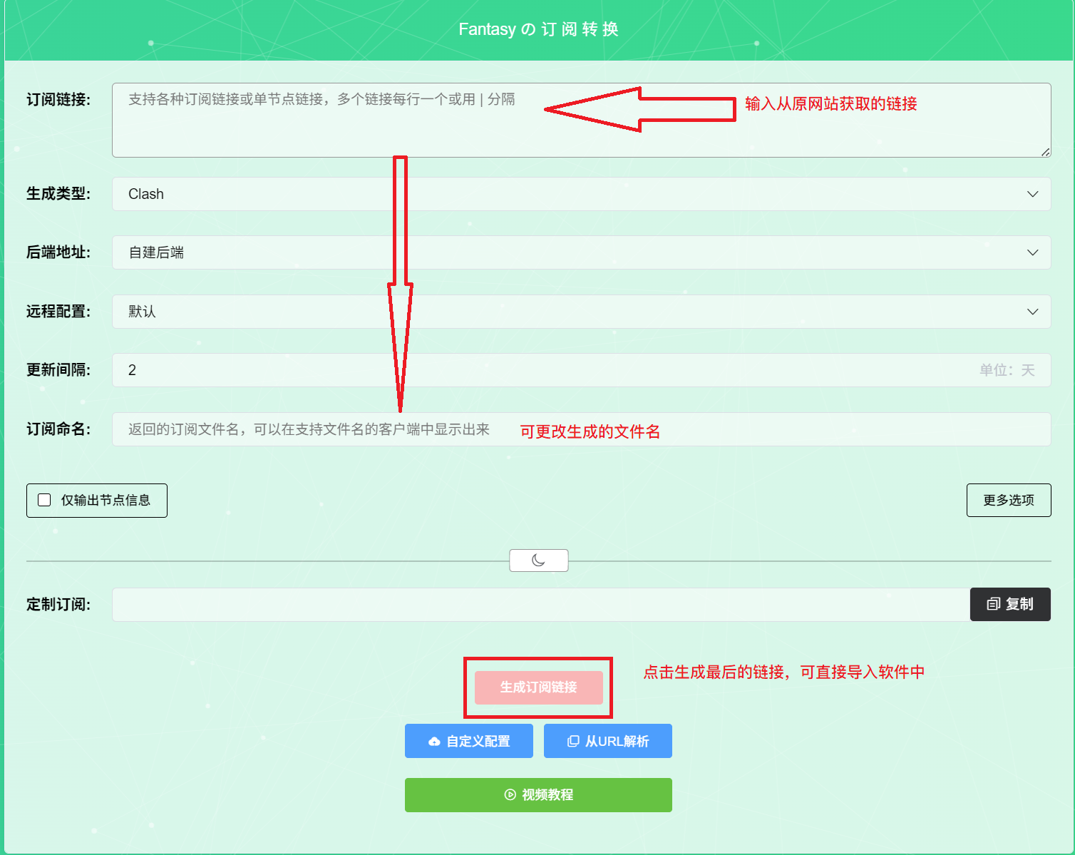 如果使用的网站没有提供相应软件的订阅,或者您需要使用自定义规则,亦或者出现即使修改 DNS 都无法下载订阅的情况,则需要自行转换订阅。